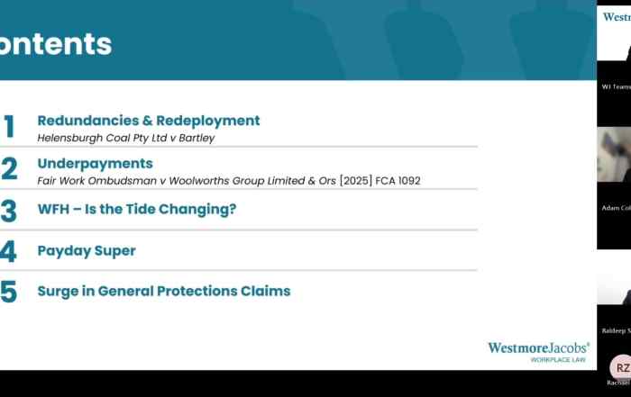 On 17 September 2025, WestmoreJacobs presented an in-person seminar “Redeployment and other Cautionary Tales in Employment [...]